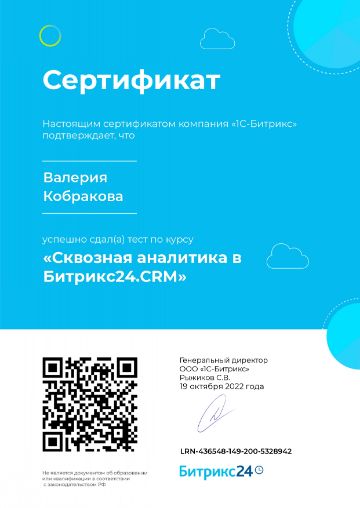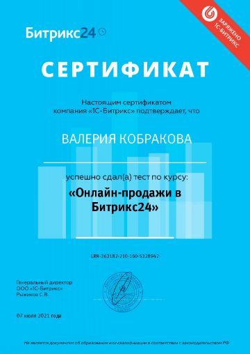 Меня зовут Валерия Кобракова - я Золотой партнер Битрикс24.